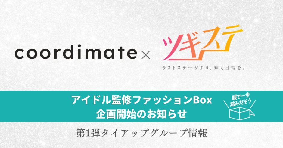 株式会社ツギステ(所在地:東京都渋谷区、代表取締役社長:橋本ゆき)は、NTTドコモグループ※1の新規事業創出プログラム「docomo STARTUP」を通じてスピンアウト※2した株式会社coordimate(所在地:東京都渋谷区、代表取締役CEO:飯野 健太郎)とアイドルが”ファンに着てほしい”コーデをプロスタイリストと監修して届ける共同企画を開始することをお知らせいたします。