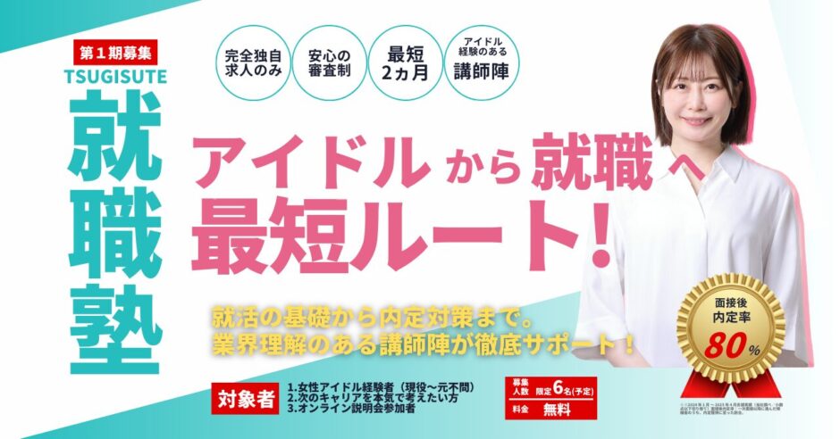 • 対象: アイドル、タレント、俳優など芸能活動の経験があり、2026年4月からの就職(正社員)を目指す方